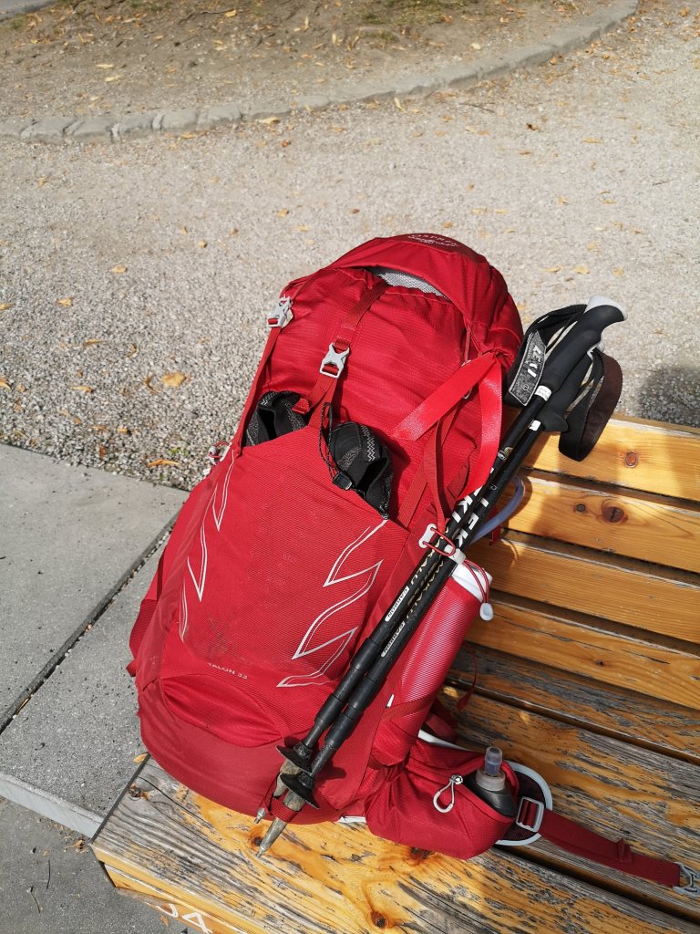Endlich besorgte ich mit die rote Schleife, die als Erkennungszeichen für die Wanderer von Salzburg nach Triest dient. In Salzburg bin ich zwar nicht losgelaufen, aber was solls.