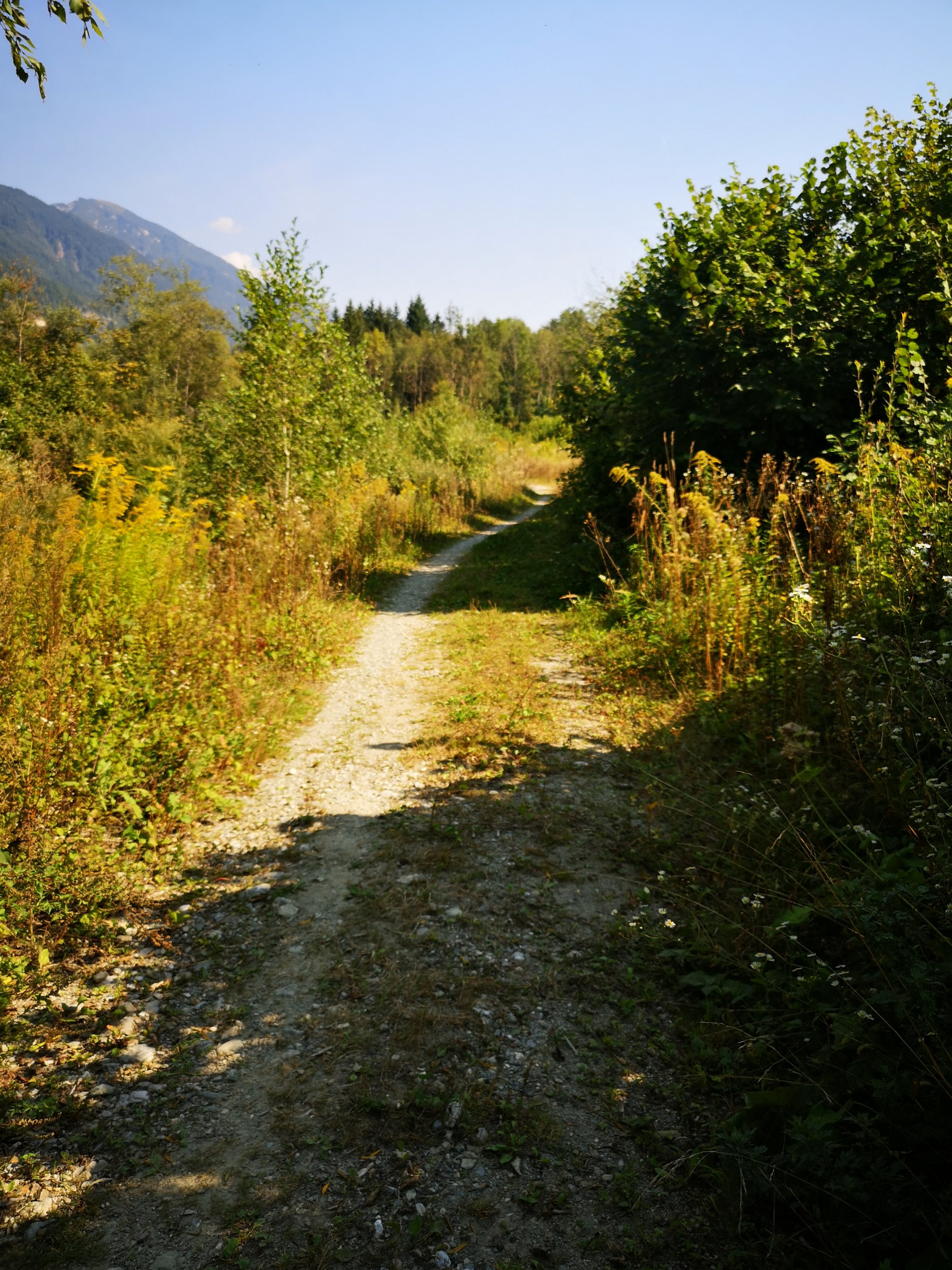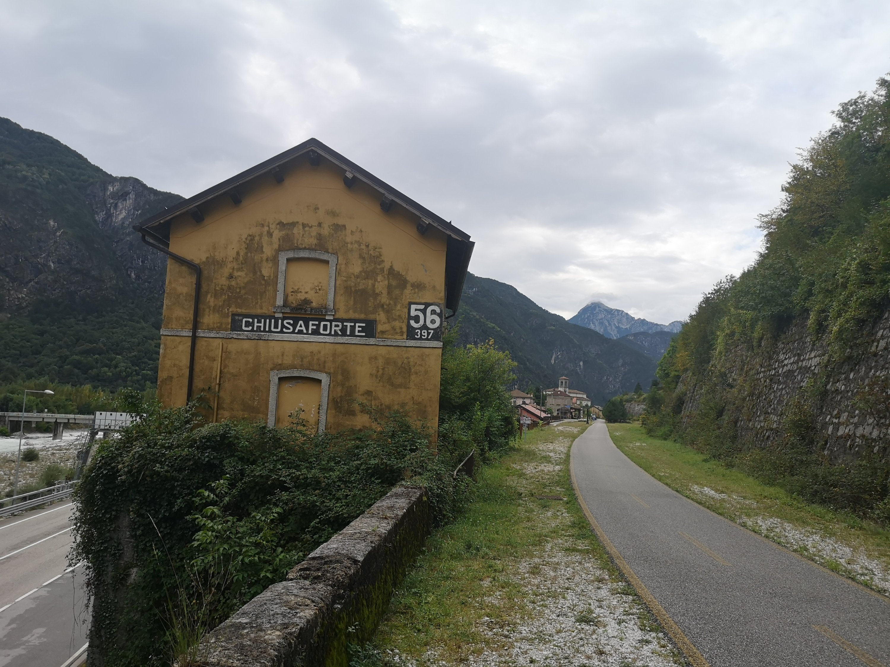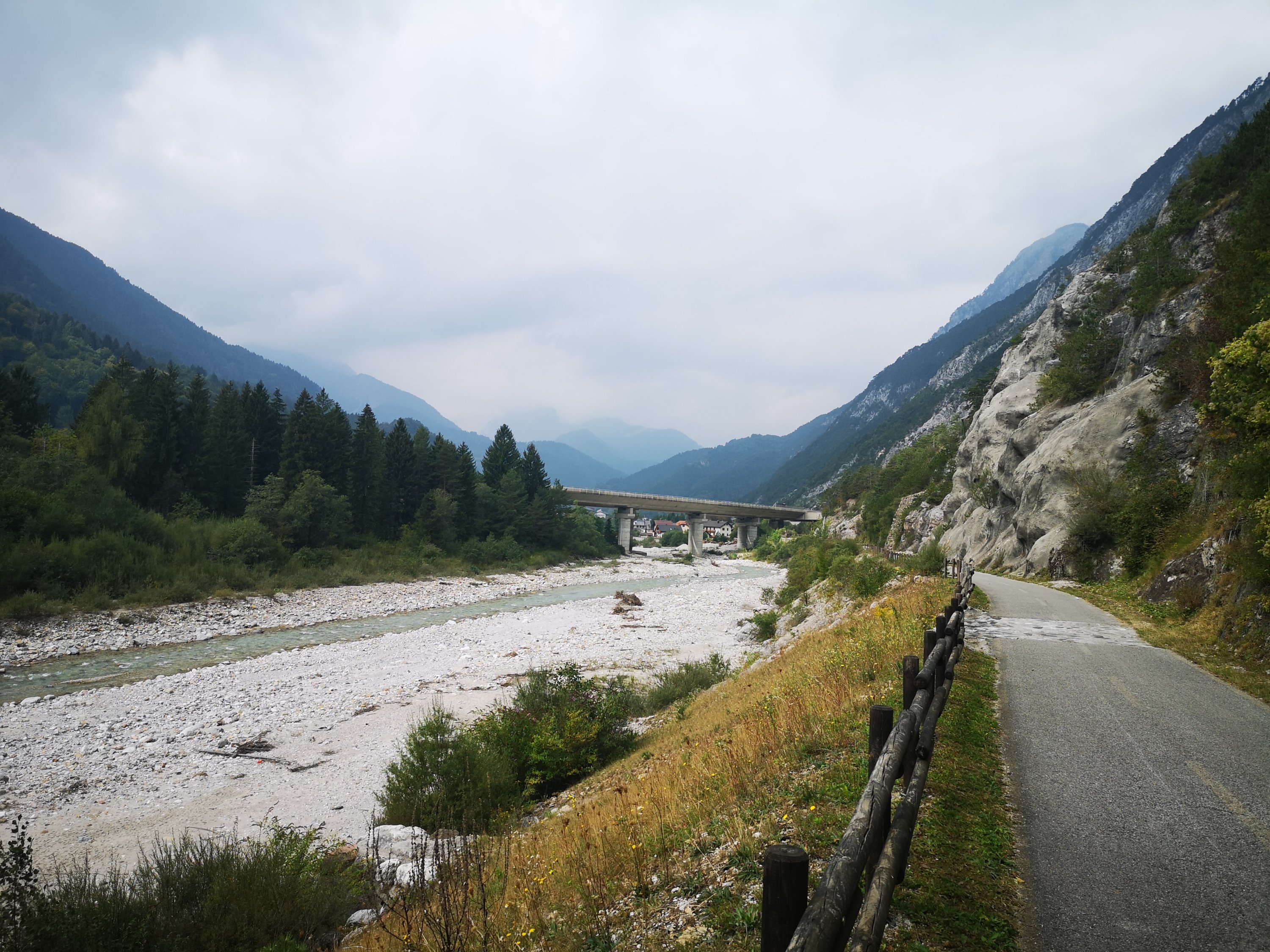 Heute früh steckte mir der gestrige Tag dann doch in den Knochen. Die letzten beiden Tage waren ja recht lang gewesen. Der Wetterbericht war für heute ziemlich regnerisch – und da ich ein super tolles („Familien“) Zimmer hatte, wollte ich noch eine weitere Nacht bleiben. Nur leider war nichts frei in dem Hotel. Man empfahl mir ein anderes Hotel im Ort, aber ich dachte mir: Naja, wenn ich schon menen Rucksack wieder packen muss, dann kann ich auch noch ein paar Kilometer laufen. Und so lief ich entlang eines alten Pilgerweges / Radlweges Richtung Pontebba, und wollte mal sehen wie weit ich komme.