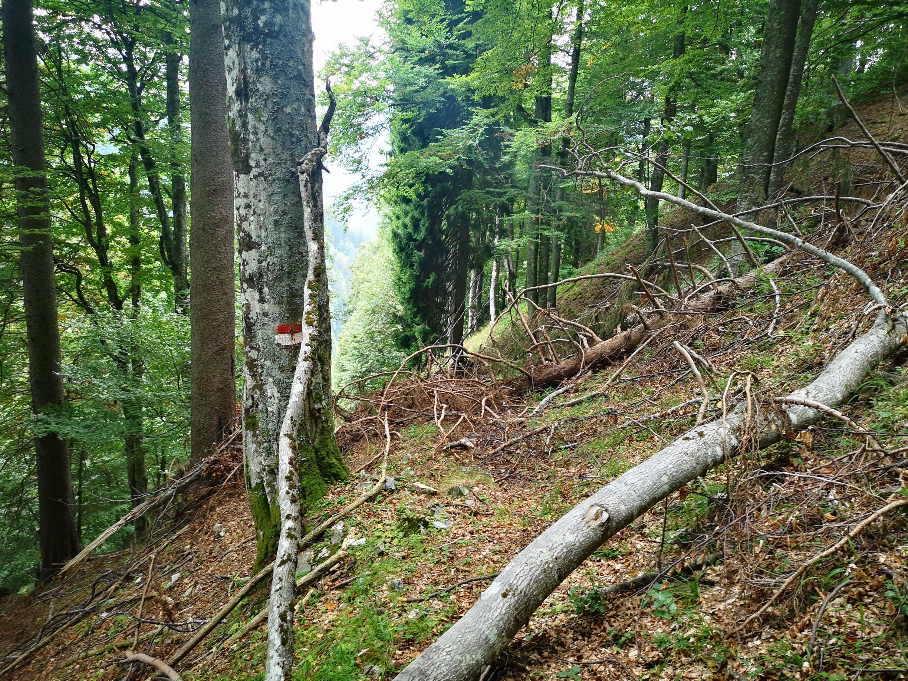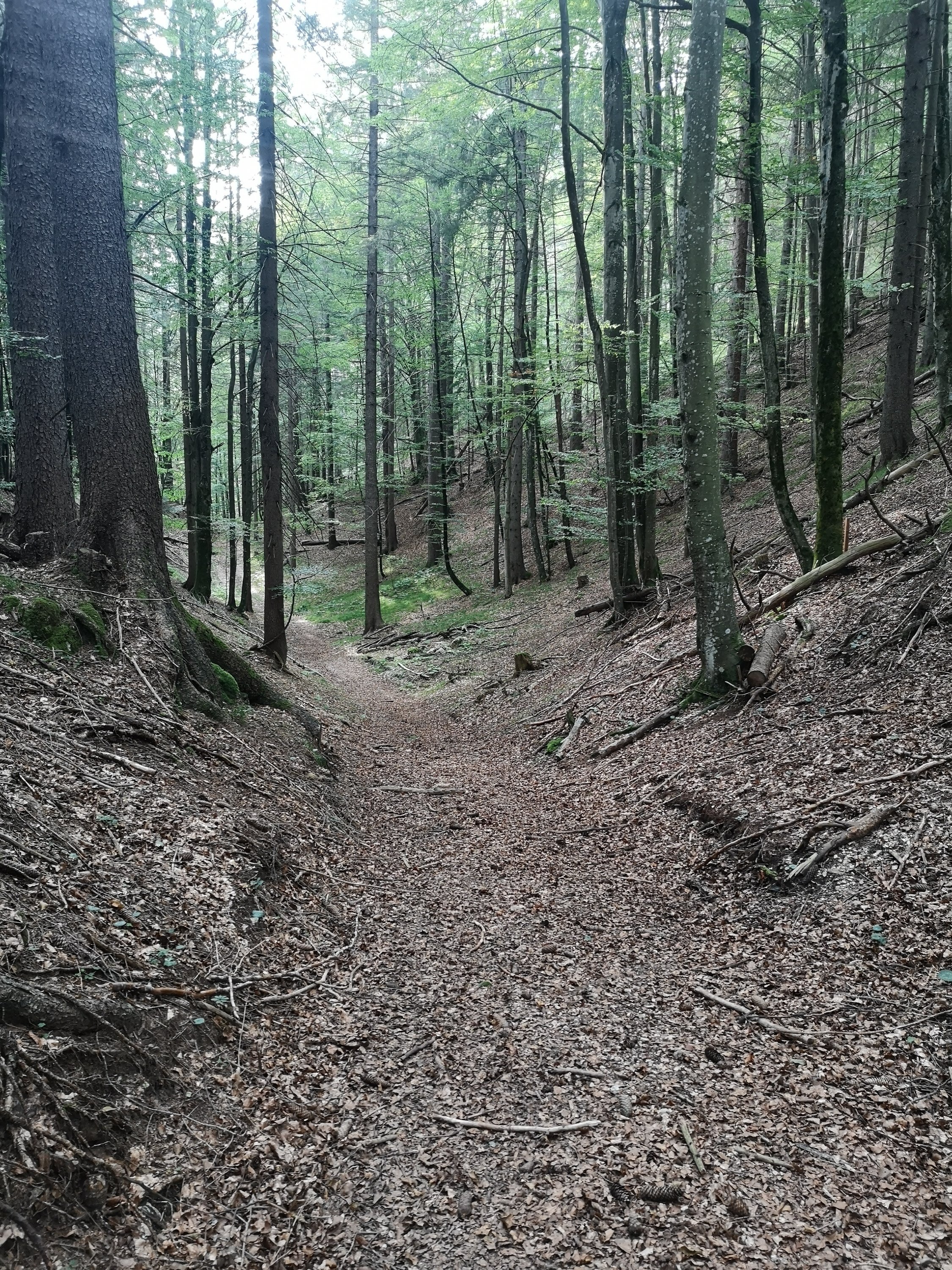 Der Weg danach war dann richtig beschissen… kaum zu gehen, ich musste unheimlich aufpassen. Zwar kein alpines Gelände, aber der Wald war sehr steil – was auf den Fotos aber nicht so rüber kommt.