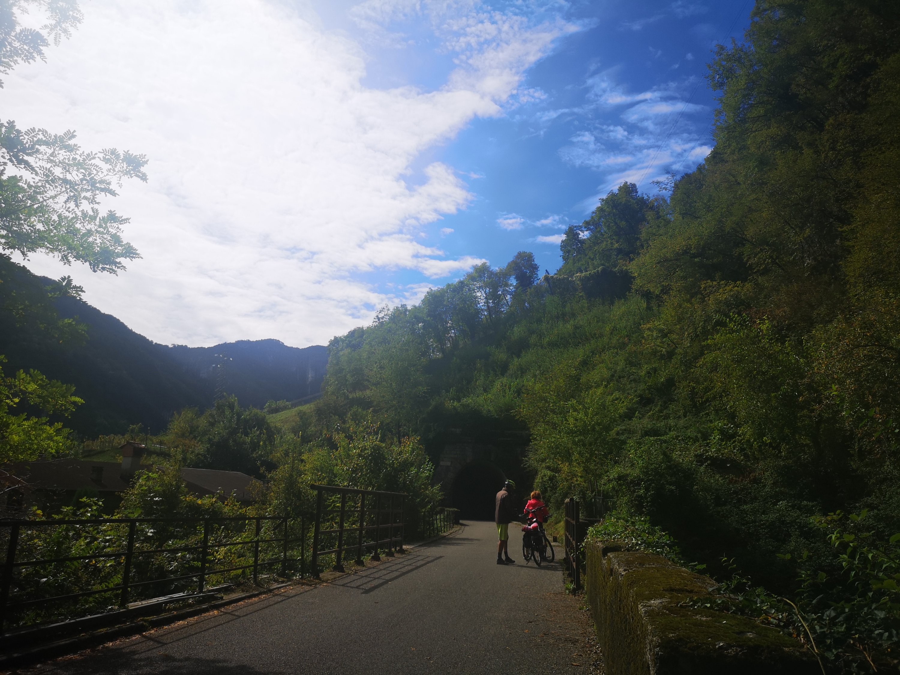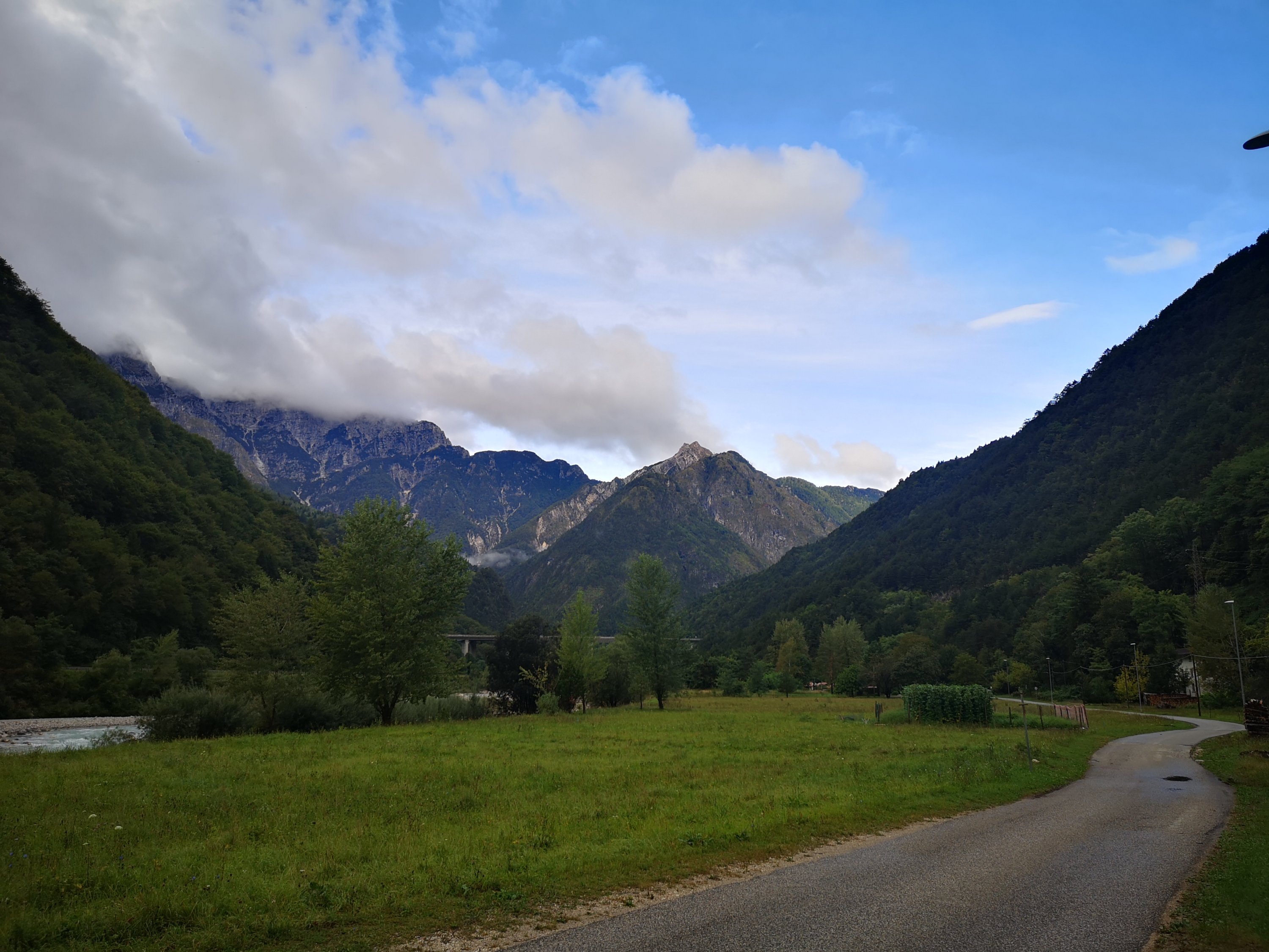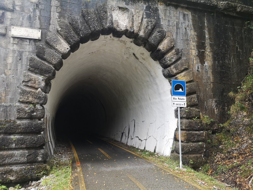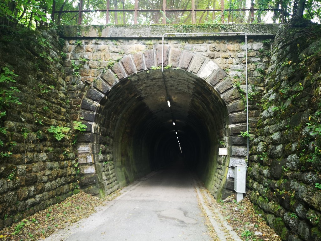 Heute bin ich durch das lange, s-förmige Tal gelaufen. Das Wetter war besser wie erwartet. Der Weg ging entlang des Alpe Adria Radweges. Dabei durchquerte ich einige Tunnel – so dass ich ganz froh war, meine Stirnlampe dabei zu haben (vor allem als rotes Licht für die Radler von hinten…)