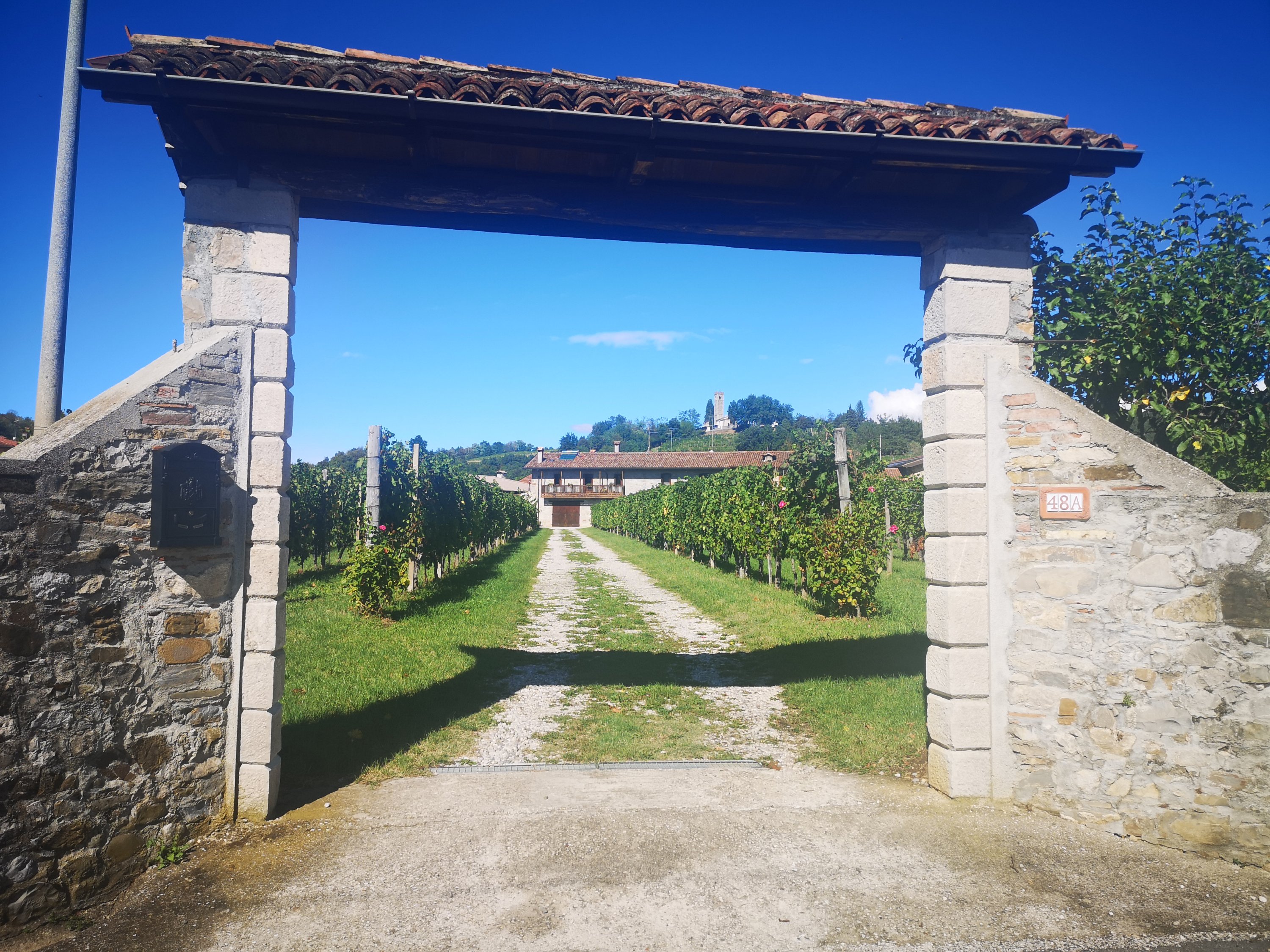 Heute früh fuhr ich 20 Minuten mit dem Bus nach Süden, nach Gemano del Friuli. Sonst hätte ich an der Bundesstraße langlaufen müssen und das wollte ich nicht. Mein Plan, war es, im Bus eine Fahrkarte zu kaufen. Naja, der Busfahrer sprach nur italienisch, und machte mir verständlich, dass ich an der Hintertür einsteigen müsse und es bei ihm keine Fahrkarten gibt.