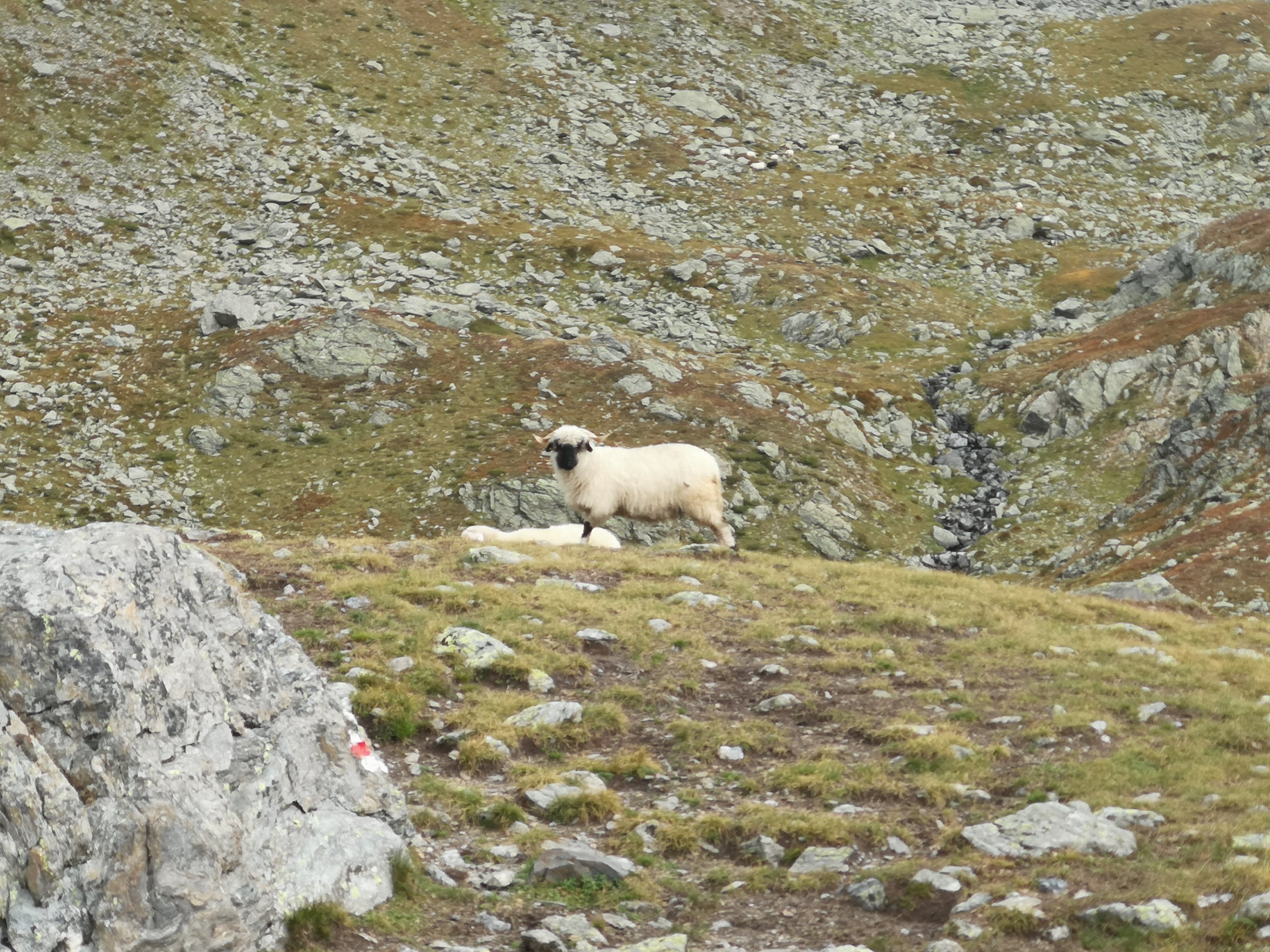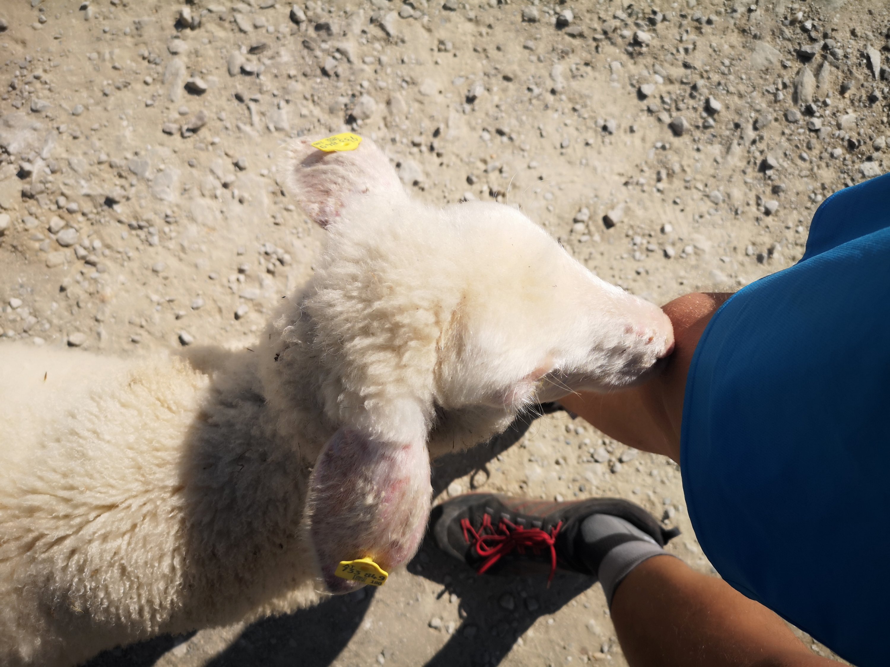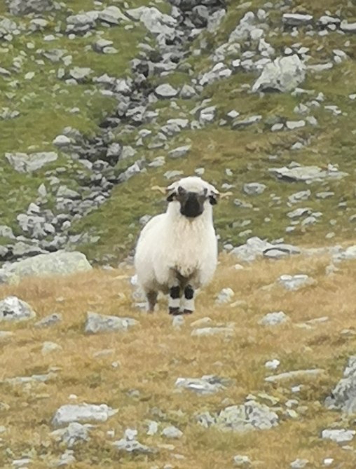 Die Landschaft wurde richtig rötlich, und ein Schaf verliebte sich in mich. Oder zumindest in das Salz an meinen Beinen.