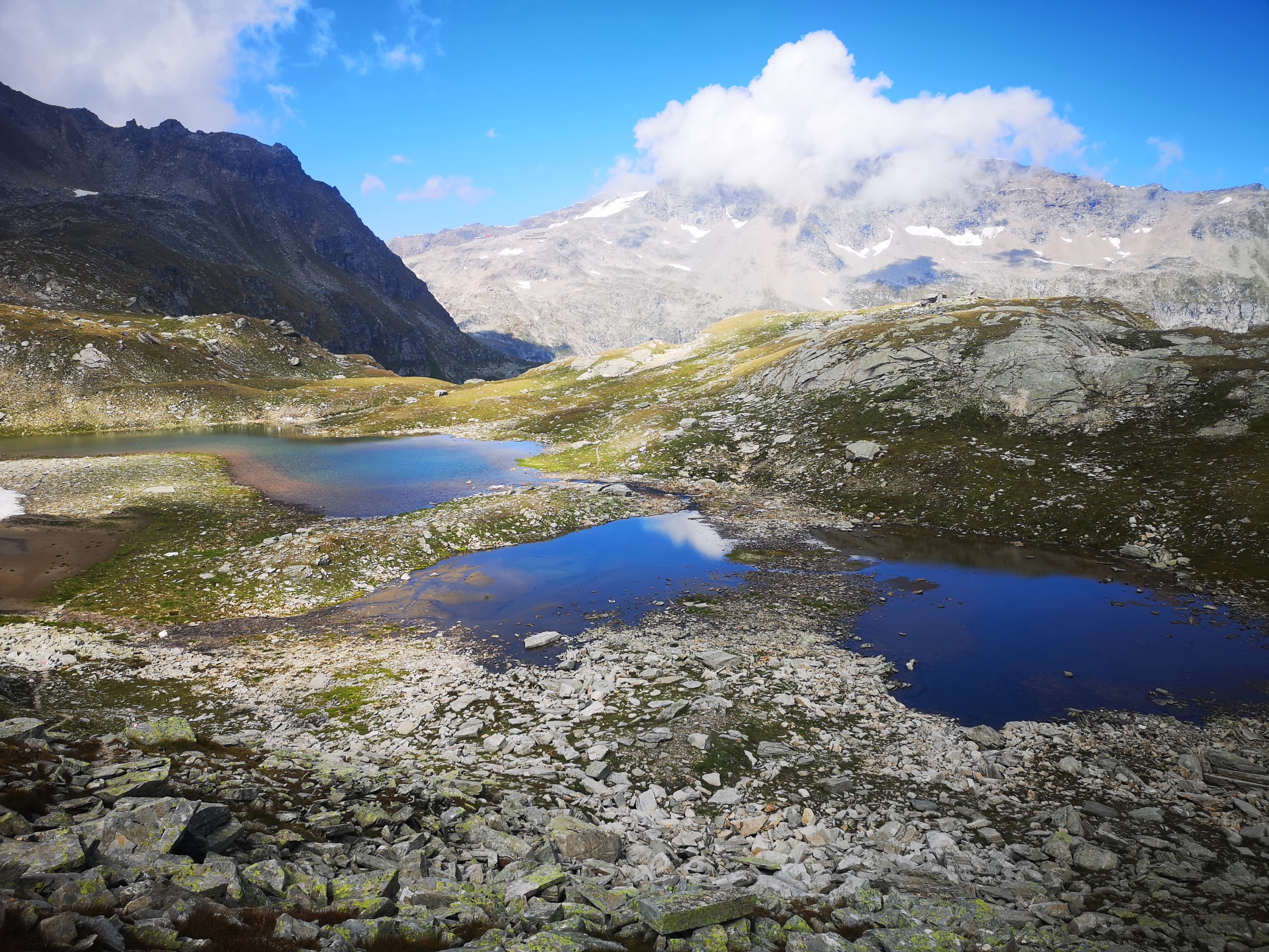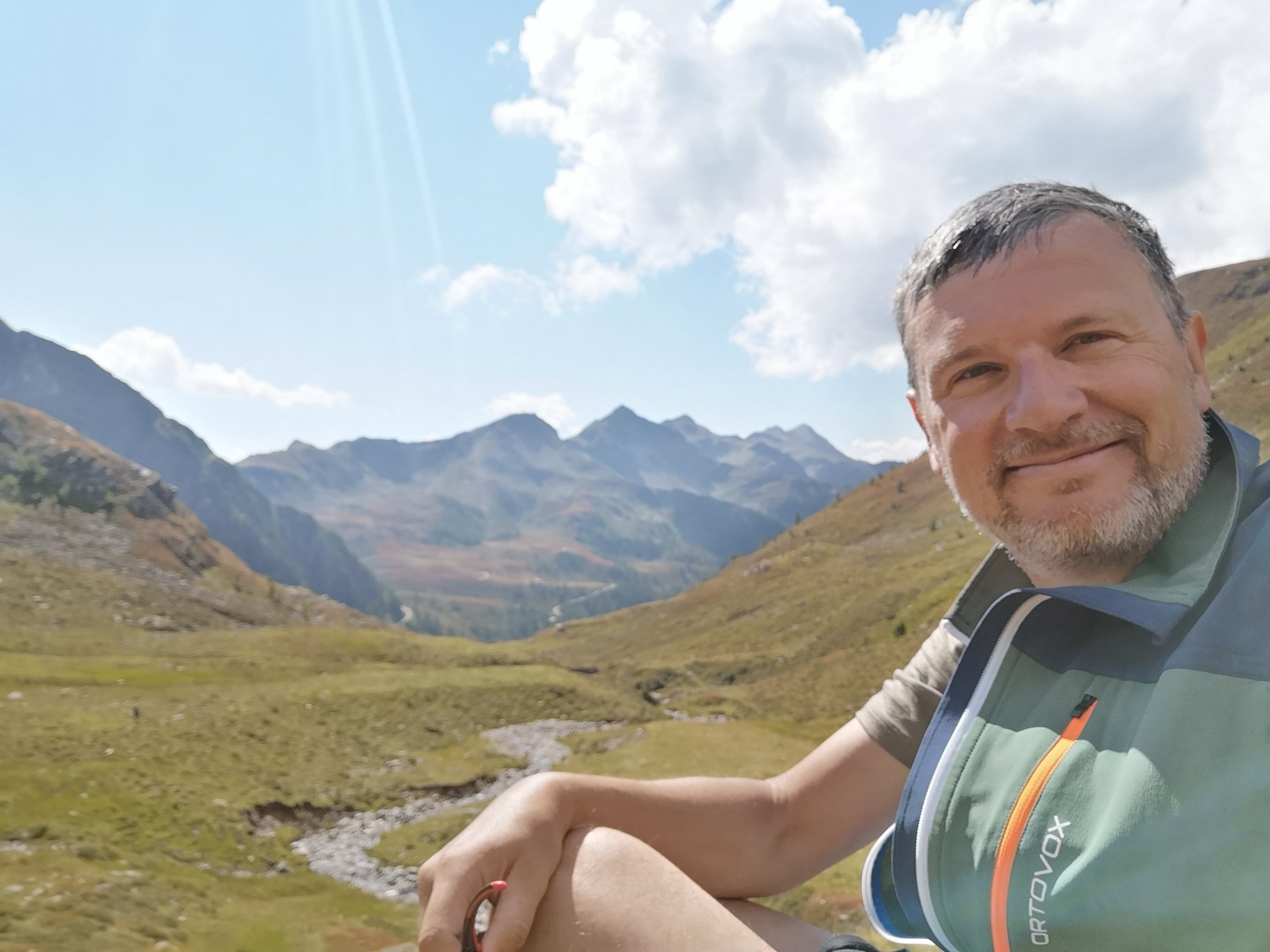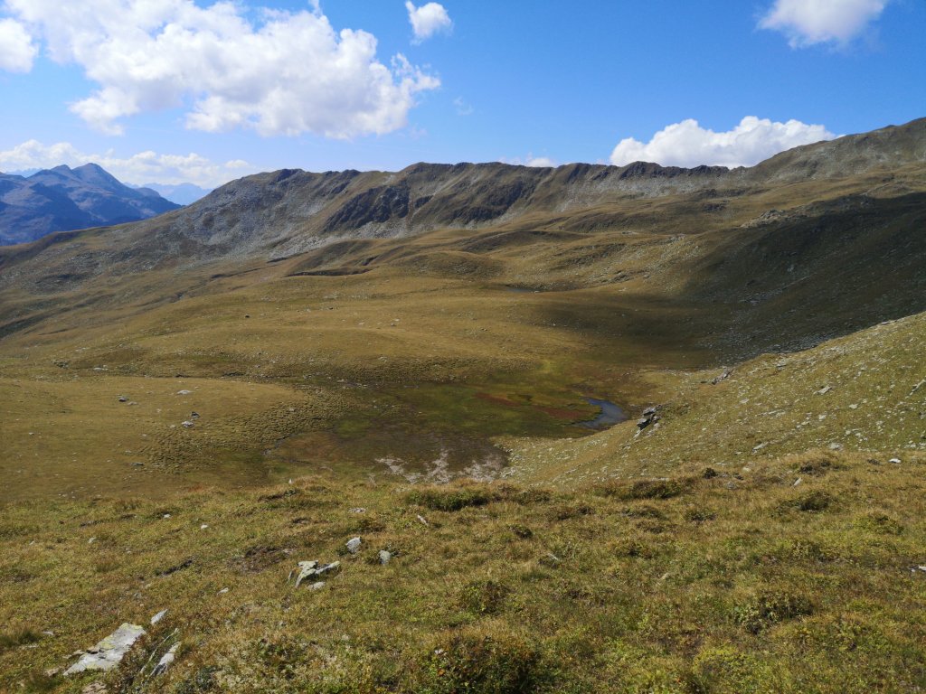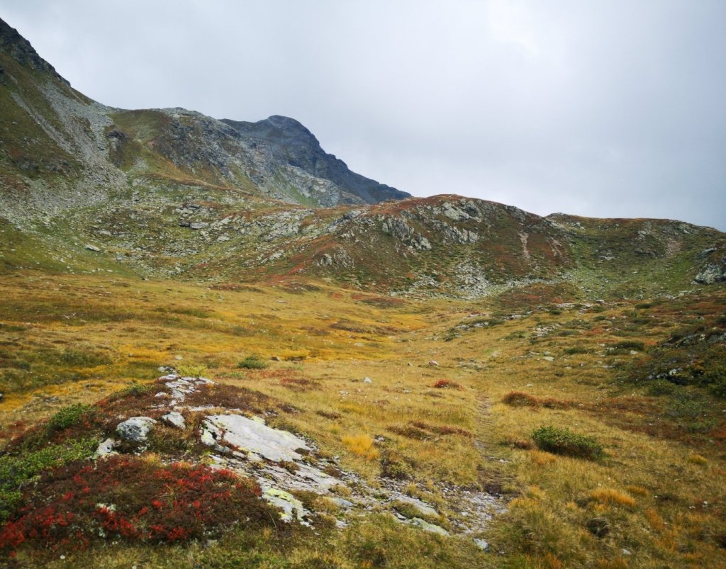 Erst ging es durch ein langes Tal nach oben. Ich blickte immer wieder aufs Handy – seit gestern Nachmittag hatte ich kein Netz mehr, und ich wollte nicht, das sich mein Basecamp Sorgen macht. Schließlich konnte ich kurz telefonieren und Bescheid geben, dass alles in Ordung ist.