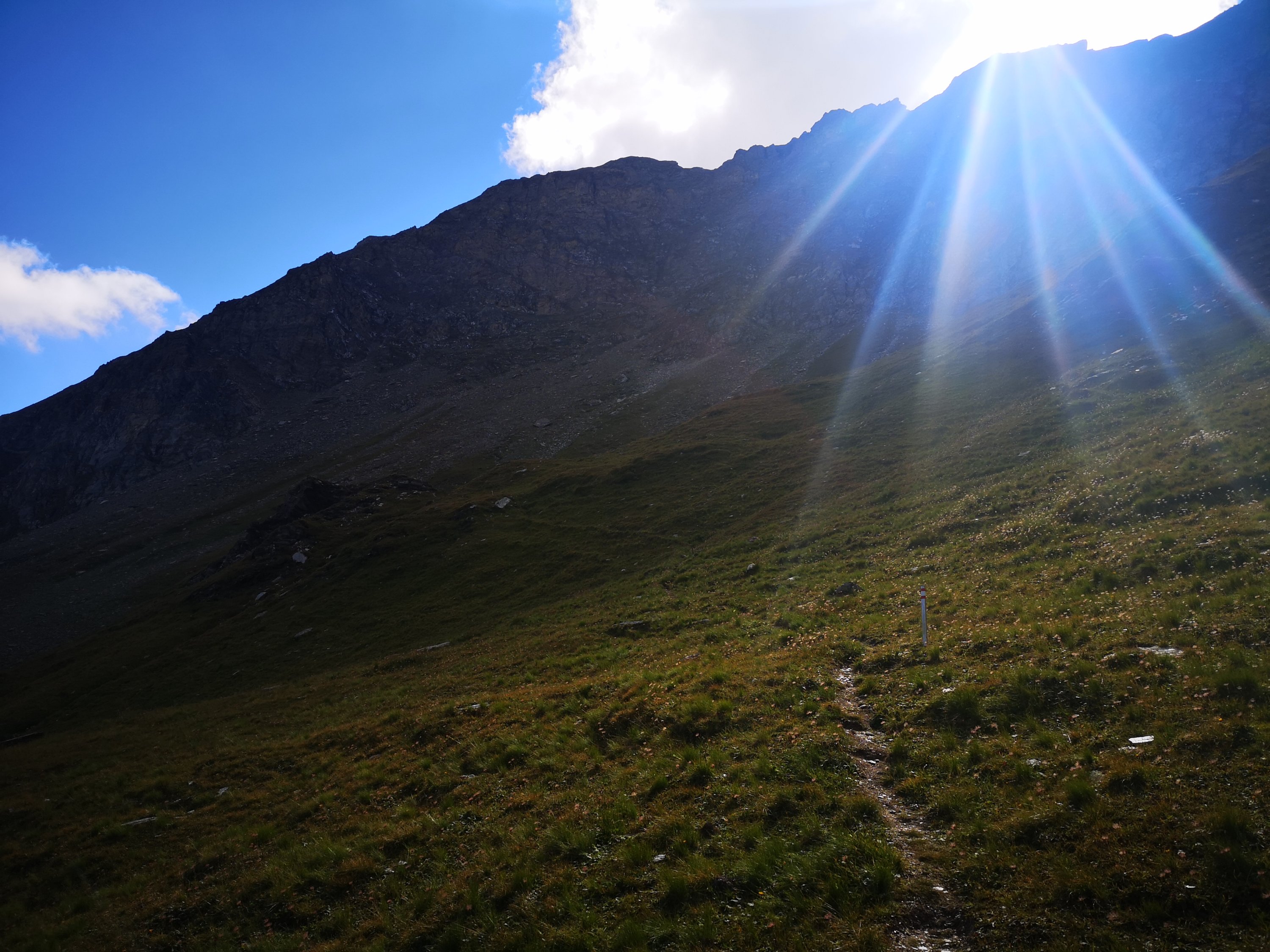 Oben begrüßte mich wieder die Sonne und dann begann der Abstieg zur Hütte.