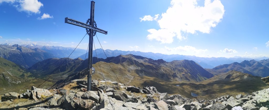 Der starke Föhnwind von gestern Abend hatte nachgelassen, und an der Fraganter Scharte – mit 2.754m der höchste Punkt der Tour – war es wirklich herrlich.