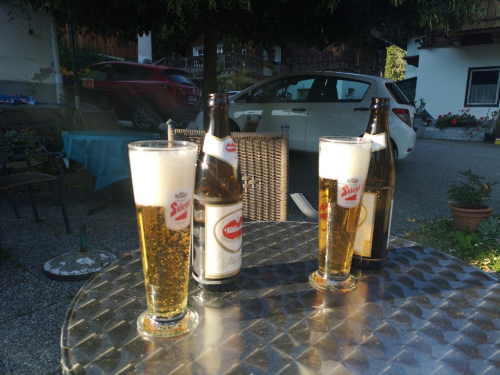 So liefen wir dann doch die Asphaltstrße hinunter – und gönnten uns noch ein Bier in der Abendsonne.