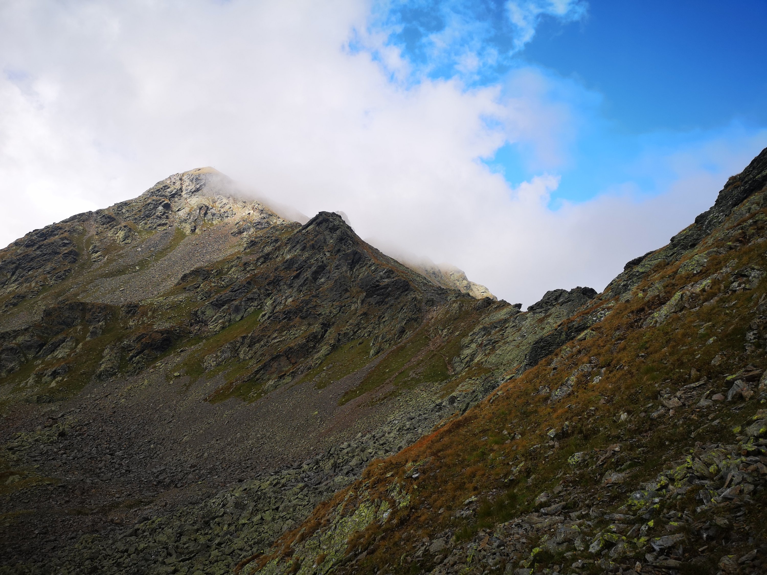 Den Aufstieg zur Kreuzspitze ließen wir aus, es fing leicht zu tröpfeln an, und der Anstieg war eh sehr lang.