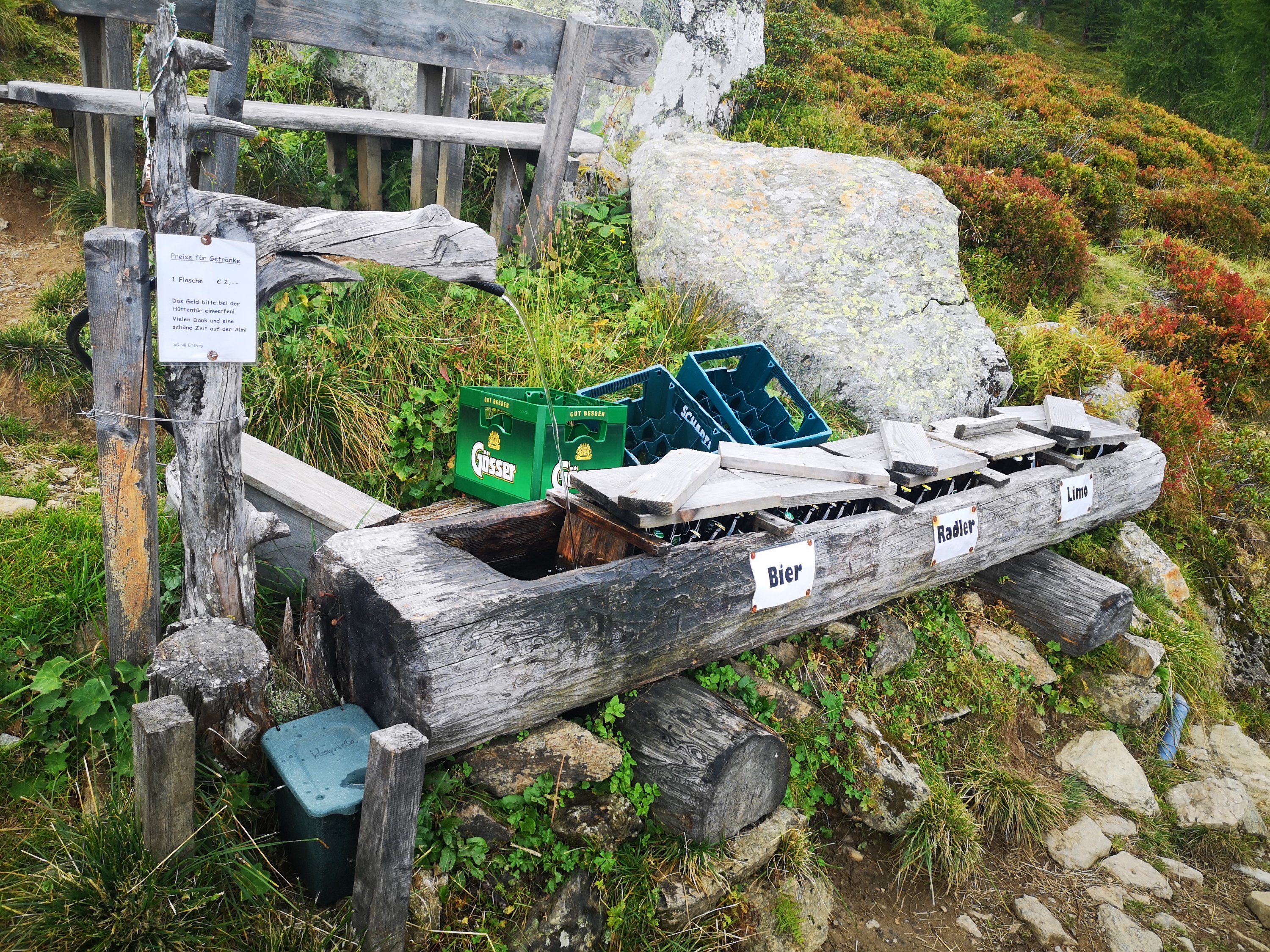 Direkt an der Hütte holte ich Nora wieder ein, und wir hatten erstmal ein Bier auf der Sonnenterasse.