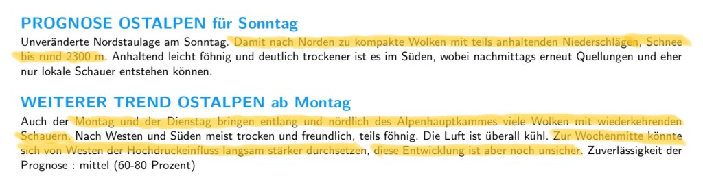 Das ist der DAV Bergwetterbericht vom Donnerstag.Naja, warten wir es mal ab…