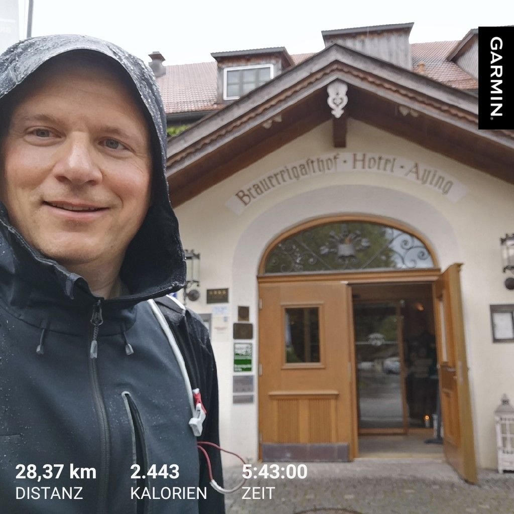 Ich werde gegen 10.30 Uhr nach Feldkirchen-Westerham laufen. Da sollte der Regen etwas nachlassen – und dort hätte ich die Option ein Stück mit dem Zu zu fahren. Hatte ich mir so nicht vorgestellt, aber was solls…