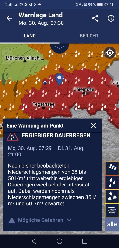 Sehr frustrierende Wetter. Es schüttet. Unwetterwarnung